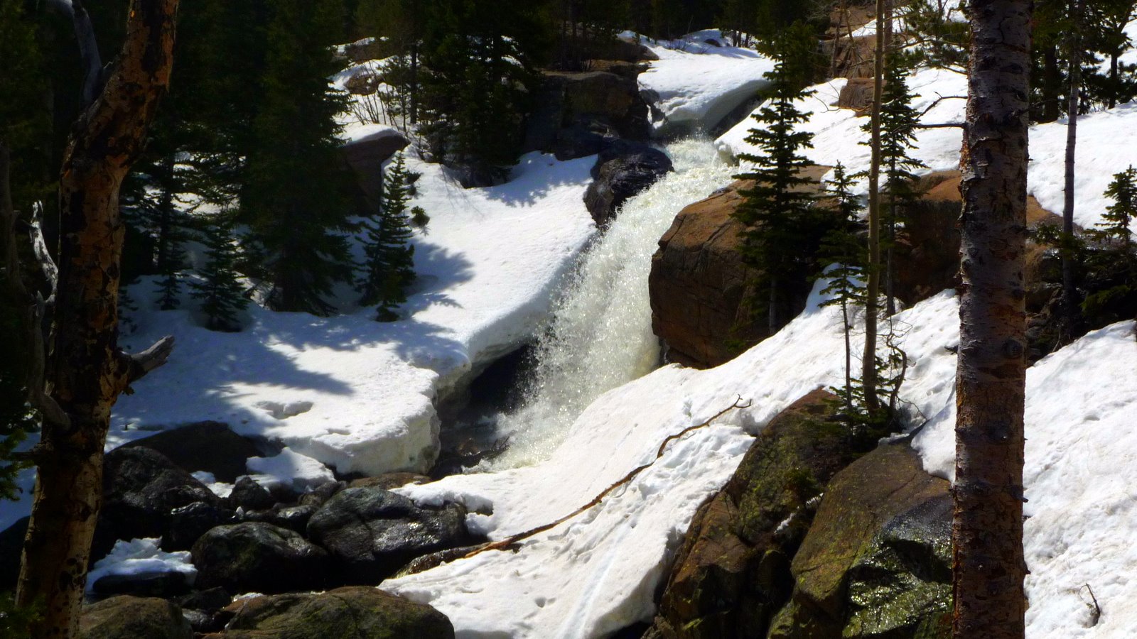 It's June 1st - time for the spring runoff to begin in earnest. Alberta Falls has shed its icy mantle and it running free, pushing the snowpack to the sides. The ground is saturated, the water is moving downhill wherever it can, the silence of winter is quickly being replaced by splashes in every direction.